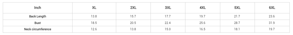 - Sizes: XL, 2XL, 3XL, 4XL, 5XL