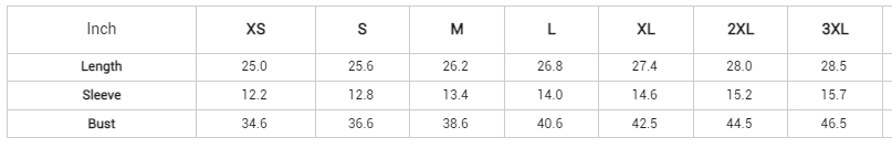 - Sizes: S, M, L, XL, 2XL, 3XL (See size chart)
